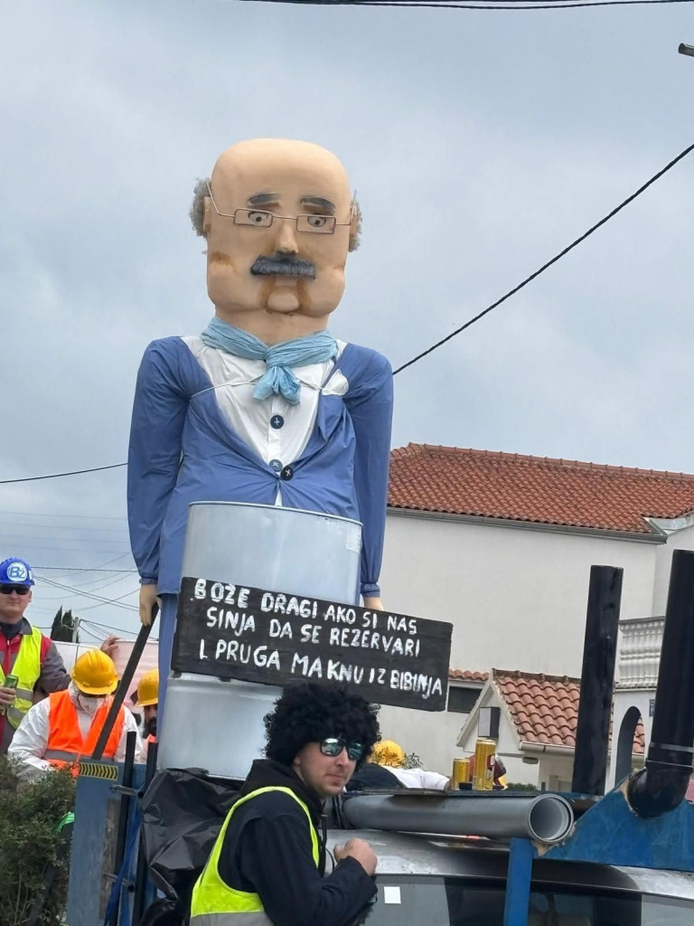 Bibinjci su za krnju odabrali generala Ivana Čermaka čiju će lutku tijekom današnje maškarane povorke javno spaliti i tako još jednom dati do znanja kako se ne slažu sa njegovom poslovnom politikom odnosno namjerom da u Bibinju skladišti goleme količine dizelskog goriva