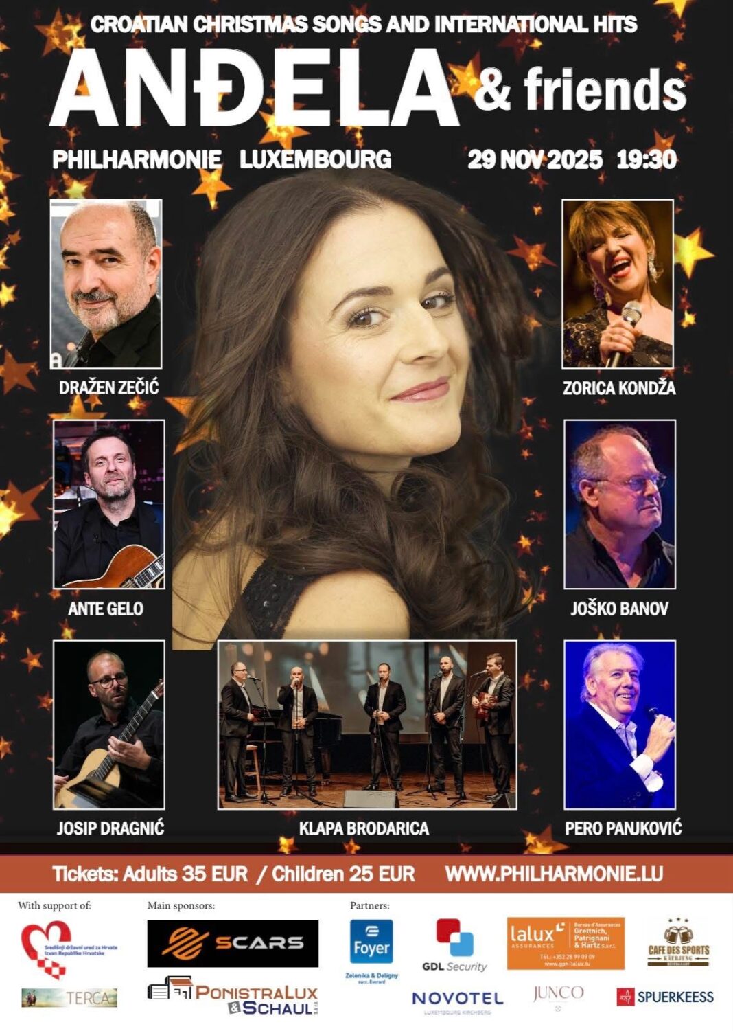 Anđela, rođena u Njemačkoj, a danas stanovnica Luksemburga, poznata je po toplom vokalu i hitovima poput bezvremenskog dueta s Draženom Zečićem „Ima li nade za nas“ iz 1998., koji je osvojio srca cijele Hrvatske. Nakon duže medijske pauze, Andjela je ovog ljeta osvojila publiku singlom Spora ljubav – emotivnom baladom o sporim, dubokim osjećanjima, koju su potpisali glazbenik Ivan Krševan Komnenović, tekstopisac Ivo Šćepanović i aranžer Leo Škaro. Ovu pjesmu, za koju je spot snimljen na Čiovu i u Splitu, Anđela će prvi put izvesti uživo upravo u Luksemburgu.