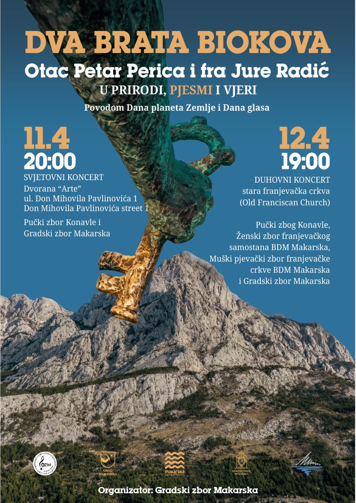 Gradski zbor Makarska organizira manifestaciju pod nazivom “Dva brata Biokova: otac Petar Perica i fra Jure Radić u prirodi, pjesmi i vjeri” povodom Dana planeta Zemlje i očuvanja okoliša i Dana glasa