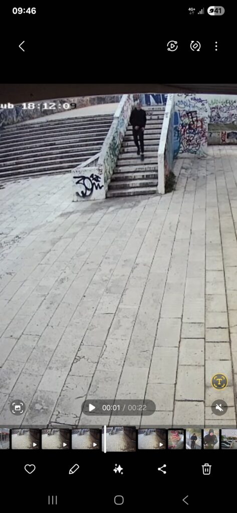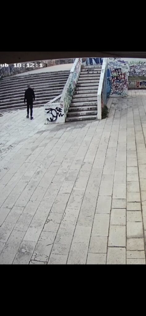 Na fotografiji je osoba za koju se pretpostavlja da raspolaže saznanjima o navedenim kaznenim djelima. Radi se o muškoj osobi starosti oko 20 godina, visine od 180 cm, odjeven u crnu jaknu s kapuljačom, crne hlače i crne tenisice.