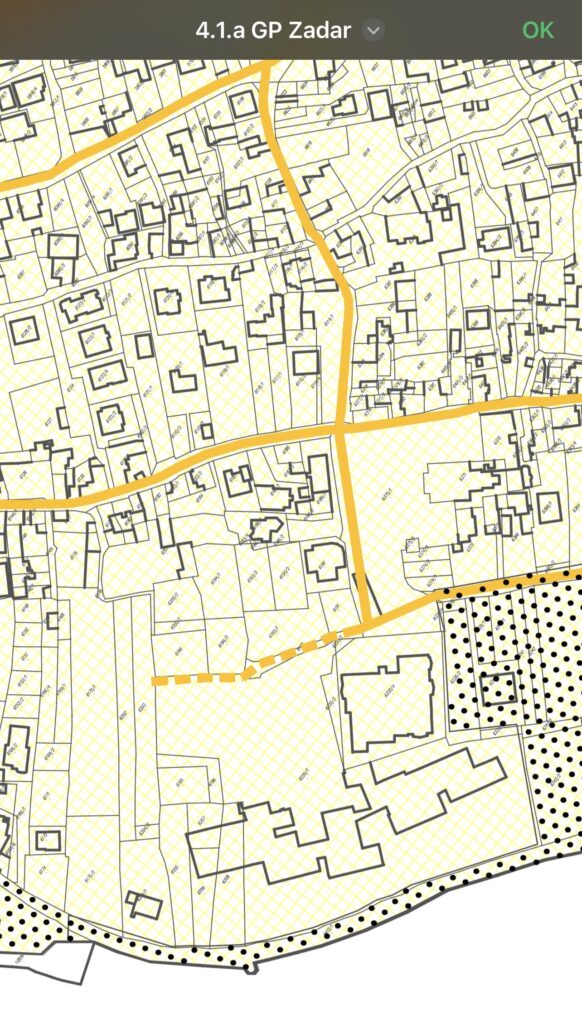 - Vraćamo se na prostorni plan koji je i danas svima dostupan na stranicama Zavoda za prostorno uređenje Zadarske županije a kojega su i na ovom skupu gospodin Zvonimir Rogić i sam gradonačelnik osporavali tvrdeći da nije na snazi. Na njemu je jasno prikazana cesta na sjevernoj međi školskog zemljišta za koju obojica tvrde da se ne nalazi tu gdje je prikazana već „negdje gore“. Taj isti prostorni plan je prilikom potpisivanja Peticije UMA 1726 prezentirala mještanima i javnosti te je bio povod za nekoliko verbalnih napada na članicu Udruge koja je prikupljala potpise,