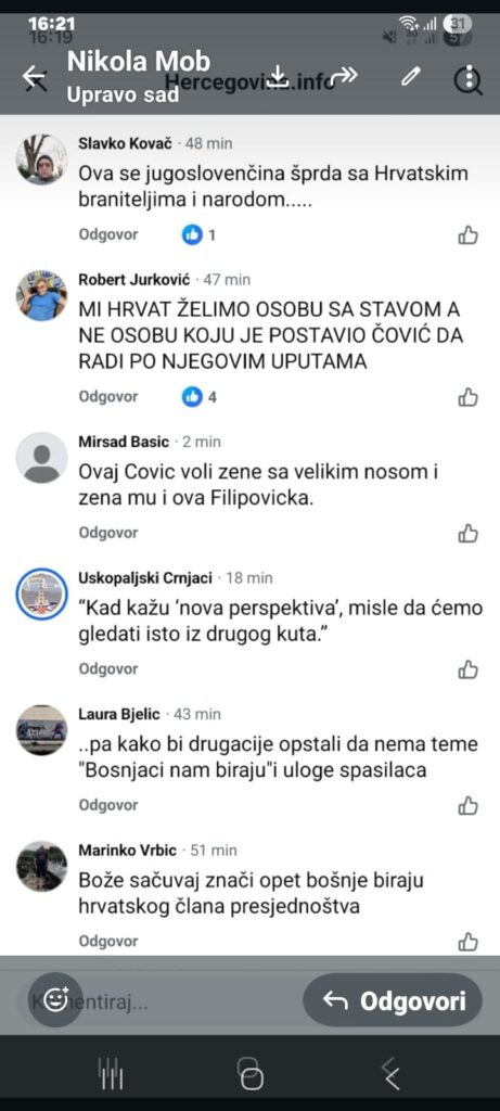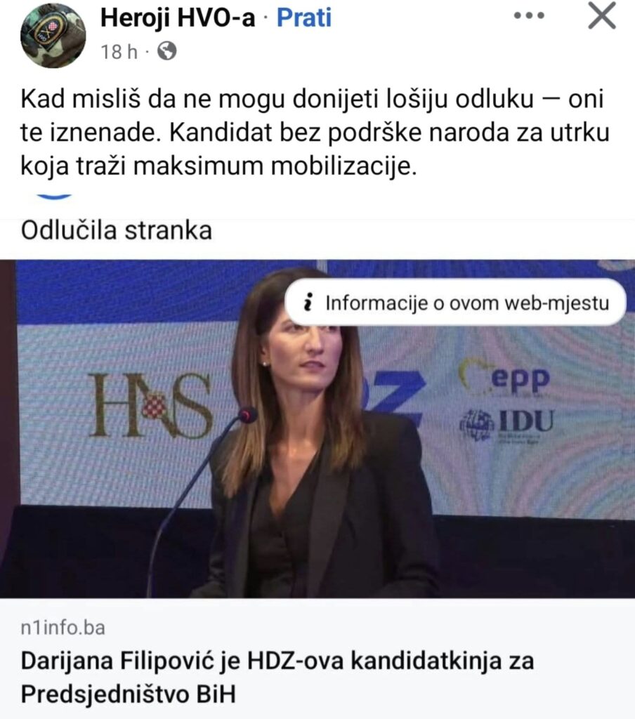 Čvrsto držim, kako je posrednim izborom, koji i nije baš posve jasan, niti je  demokratski otvoren, dobivena posrednica kao kandidat za člana predsjedništva BiH! Dakle, to znači da je lider posredovatelj a da bi pozicija člana predsjedništva BiH, bila njena-posredovateljičina! Naime, time se otvara pitanje političkog nasljeđa, koje se rukovodi legitimnim predstavljanjem? Pitanje: što ako dosadašnji nositelj vlasti nije više u moći i stanju, obnašati djelatnu poziciju…Čvrsto držim, da posredni izbori, koji jesu komunistički relikt, i kao takvi, ne pripadaju niti jednom demokratskom procesu, niti mogu garantirati izbornu legitimnost. Stoga, u smislu učinkovitog političkog nasljeđa, na taj način izabrana kandidatkinja ne može biti u kontinuitetu vršenja političko djelatne, izborne, pozicije! Nije li nelegitimna…To i Vi mislite?